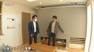 今回のお家もとても性能が高く、各季節を快適に暮らせるお家になっておりました。床下が空洞になっており、その空洞にエアコンの暖気を吹き込み、床から家全体を温める仕組みになっていました。えひめ住販は日光を取り込む窓や床下暖房など、冬は快適に過ごせるけれど夏はどうなんだ!とまっすんに聞かれ、2階にある、夏を快適に過ごすことのできる秘密を教えてくださいました。ぜひ番組をお見逃しなく!