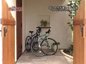 玄関前のこのスペース、施主様の趣味である自転車が置かれていました。